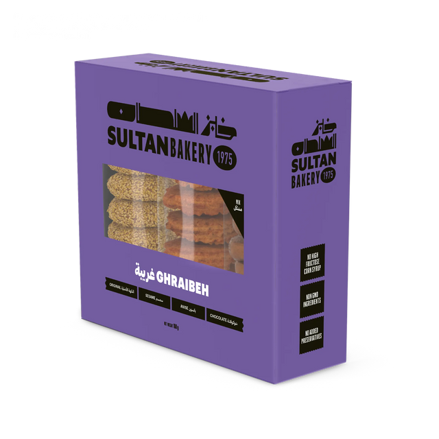 Bring tradition and variety to the table with Sultan Bakery Ghraybeh Assortment – Rings. This premium collection features four beloved ghraybeh ring flavors—Original, Chocolate, Anise, and Sesame—each offering the signature melt-in-your-mouth texture and gentle sweetness that define this classic Middle Eastern shortbread.